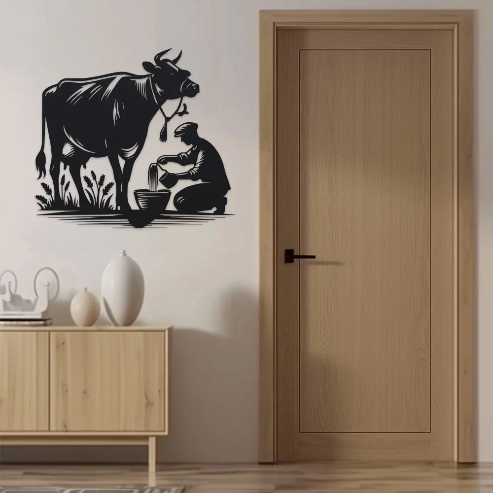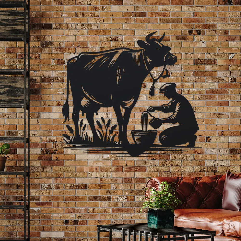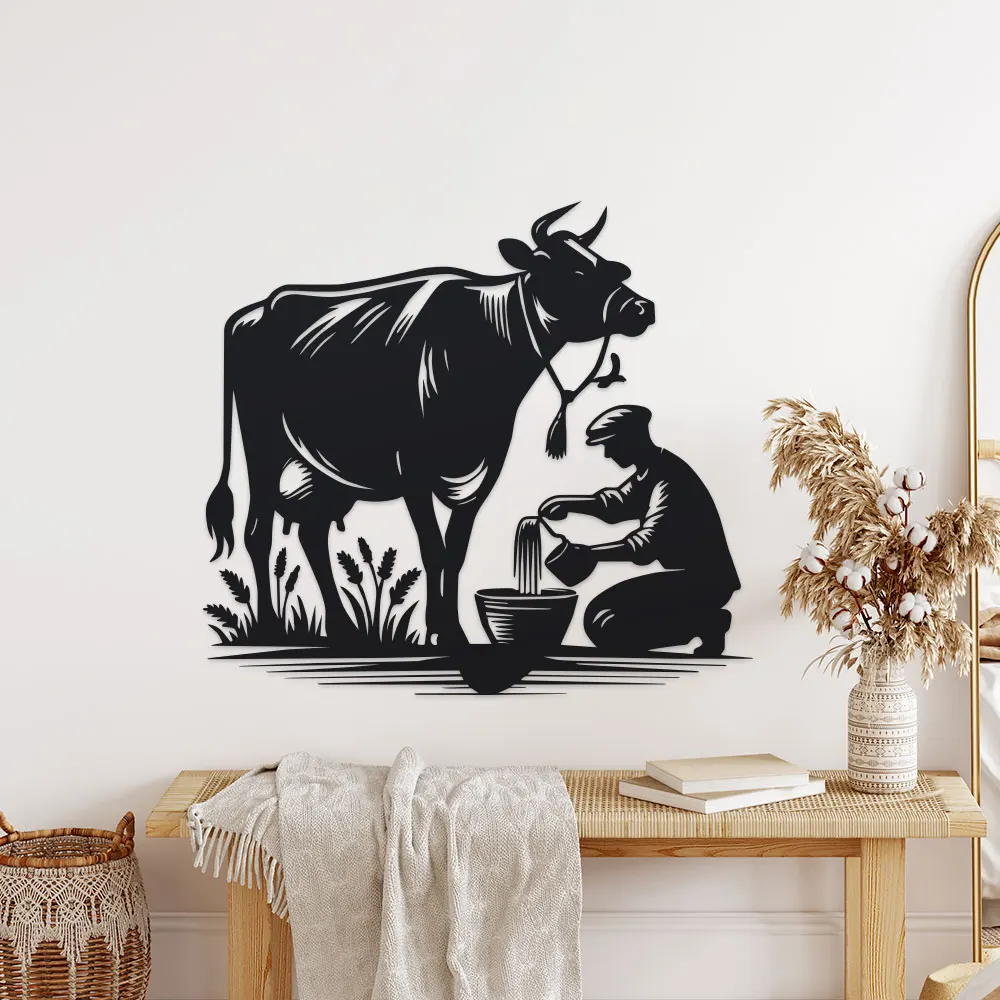 Tags: 2026, Cow and Farmer, Metal, Rustic, Silhouette, Wall Decor Sign